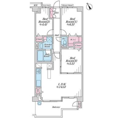 | 間取り(内訳) | 3LDK(洋6.3/5.5/4.4LDK14.5) | ||